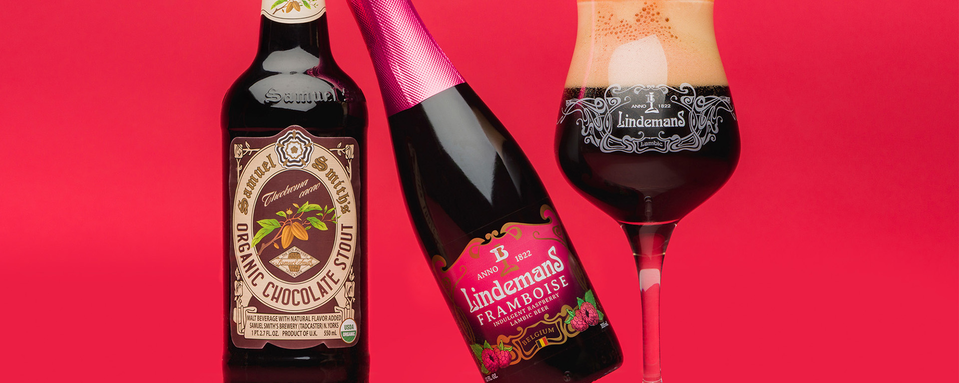 Organic Chocolate Stout meets Strawberry or Raspberry Lambic and they marry into a beautiful beer cocktail sure to lavish your taste buds better than any other gift.